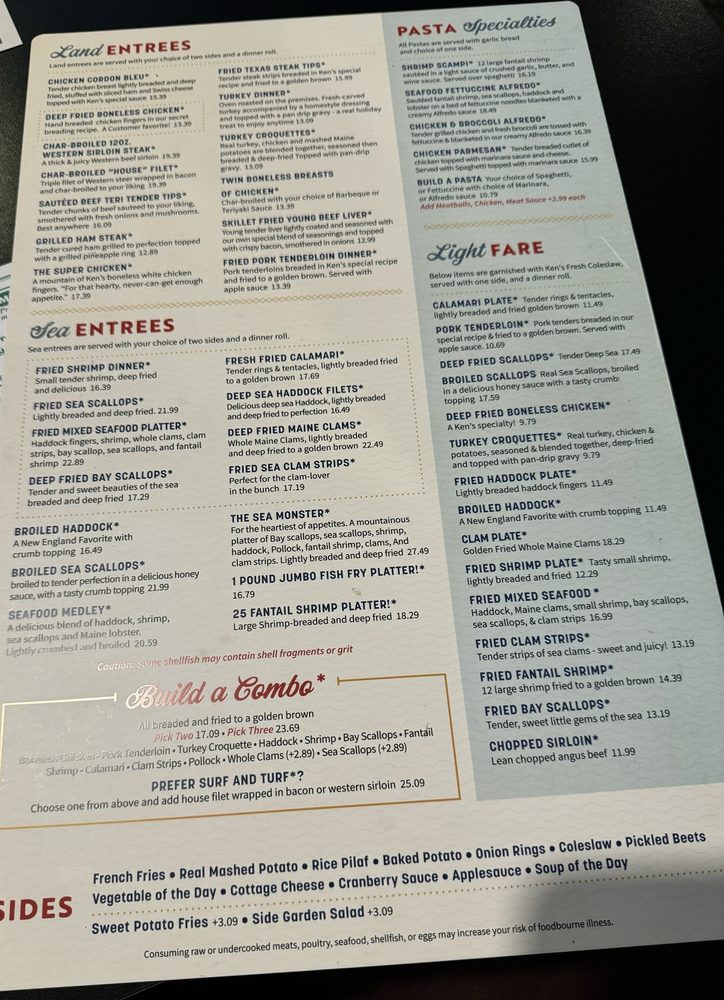Ken's prides itself on variety, providing options for all diets, including vegan and vegetarian meals. Customers appreciate the attentive service, where drinks are refilled without having to ask. With outdoor seating and a relaxed vibe, it's an ideal spot for breakfast, lunch, dinner, or dessert. Make sure to check out their Mini Shore Lunch for just $16.25. Come experience the warmth of Ken's, where every meal feels like a treat!